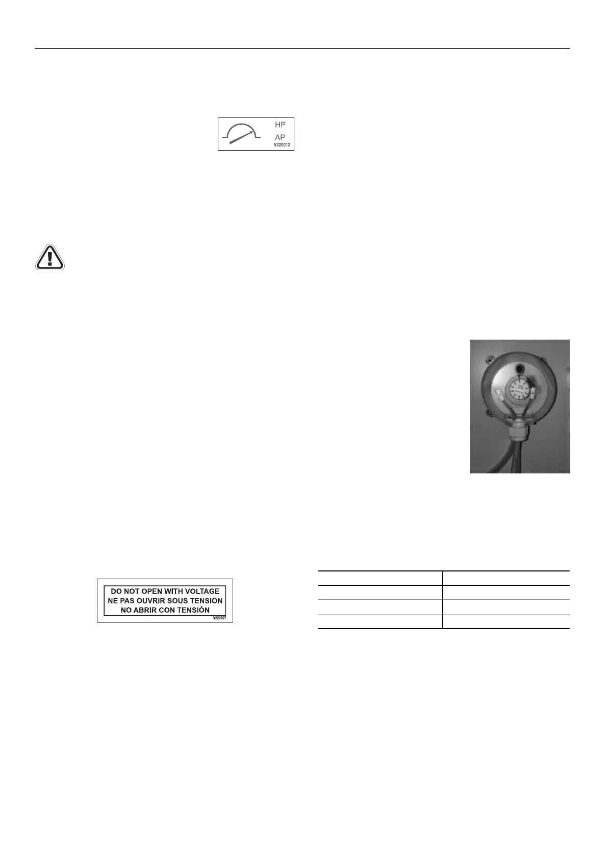 Diff erential switch for detection of the fi lter clogging level.