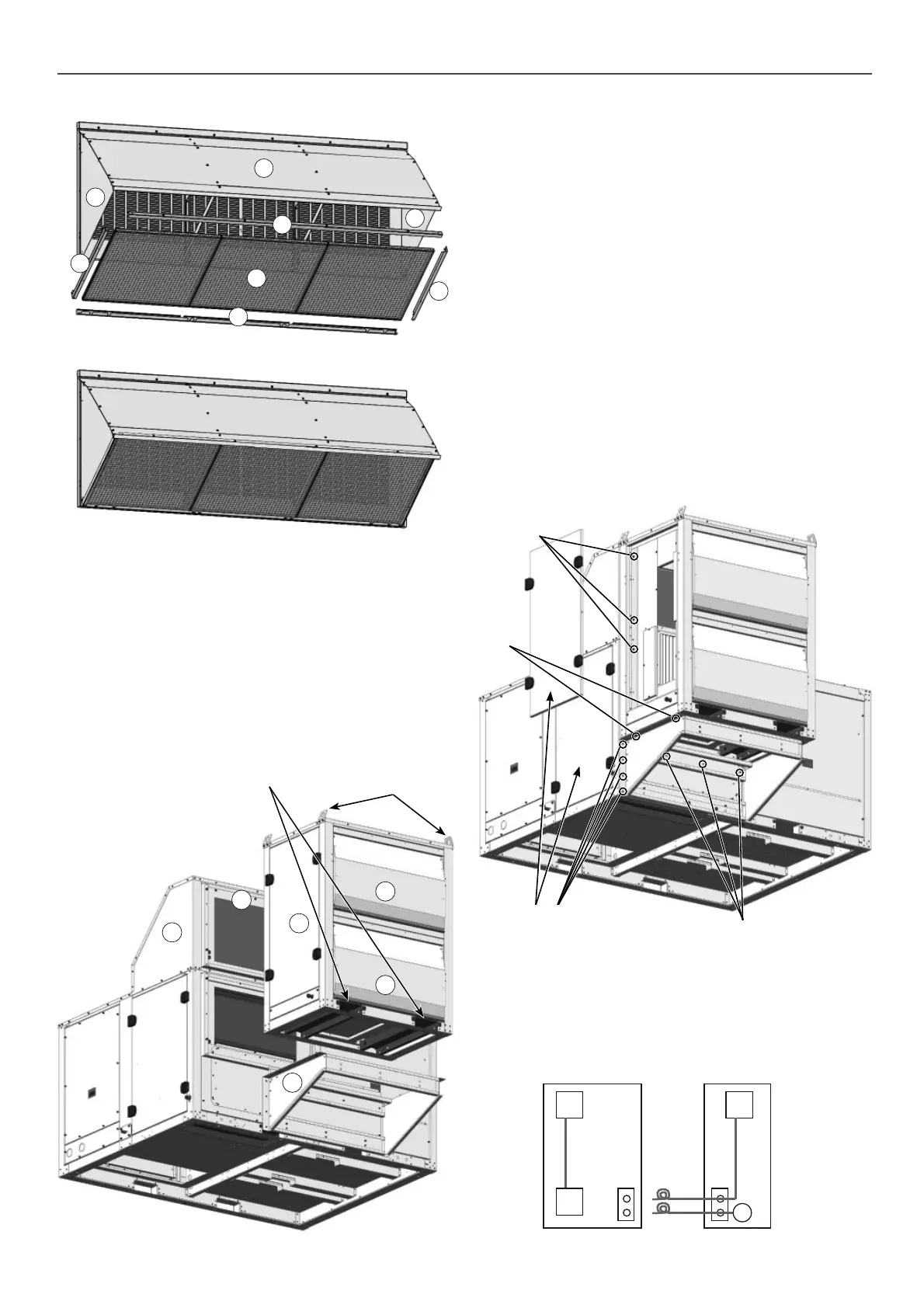 ■ First, the front panel (2) is secured using 8x40 hex screws.