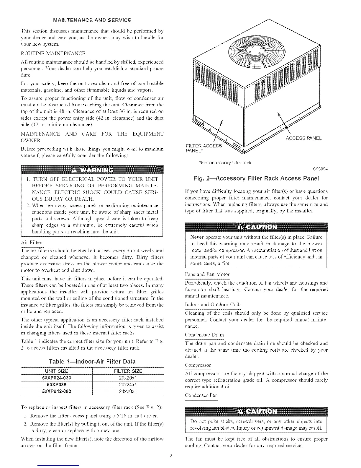 Table 1 indicates the correct filter size for your unit. Refer to Fig.