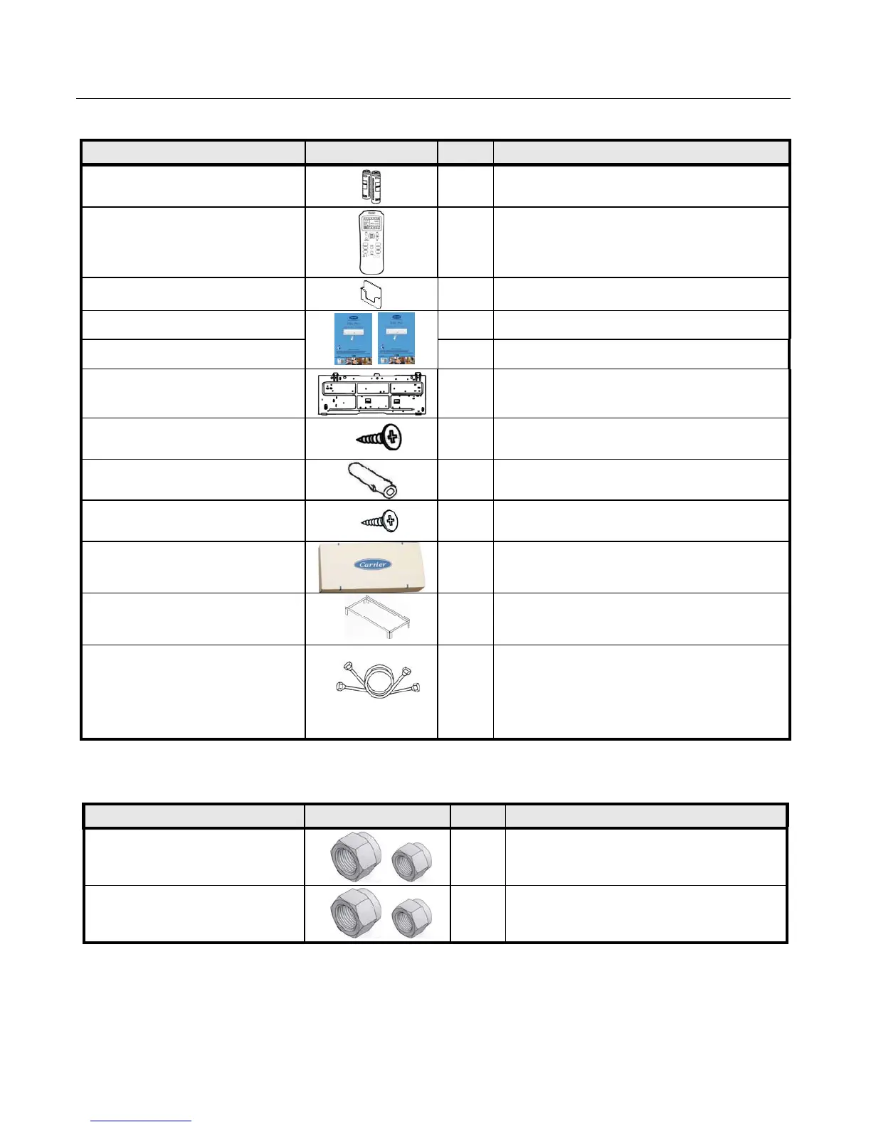 11.1 STANDARD INSTALLATION ACCESSORIES SUPPLIED FROM THE FACTORY