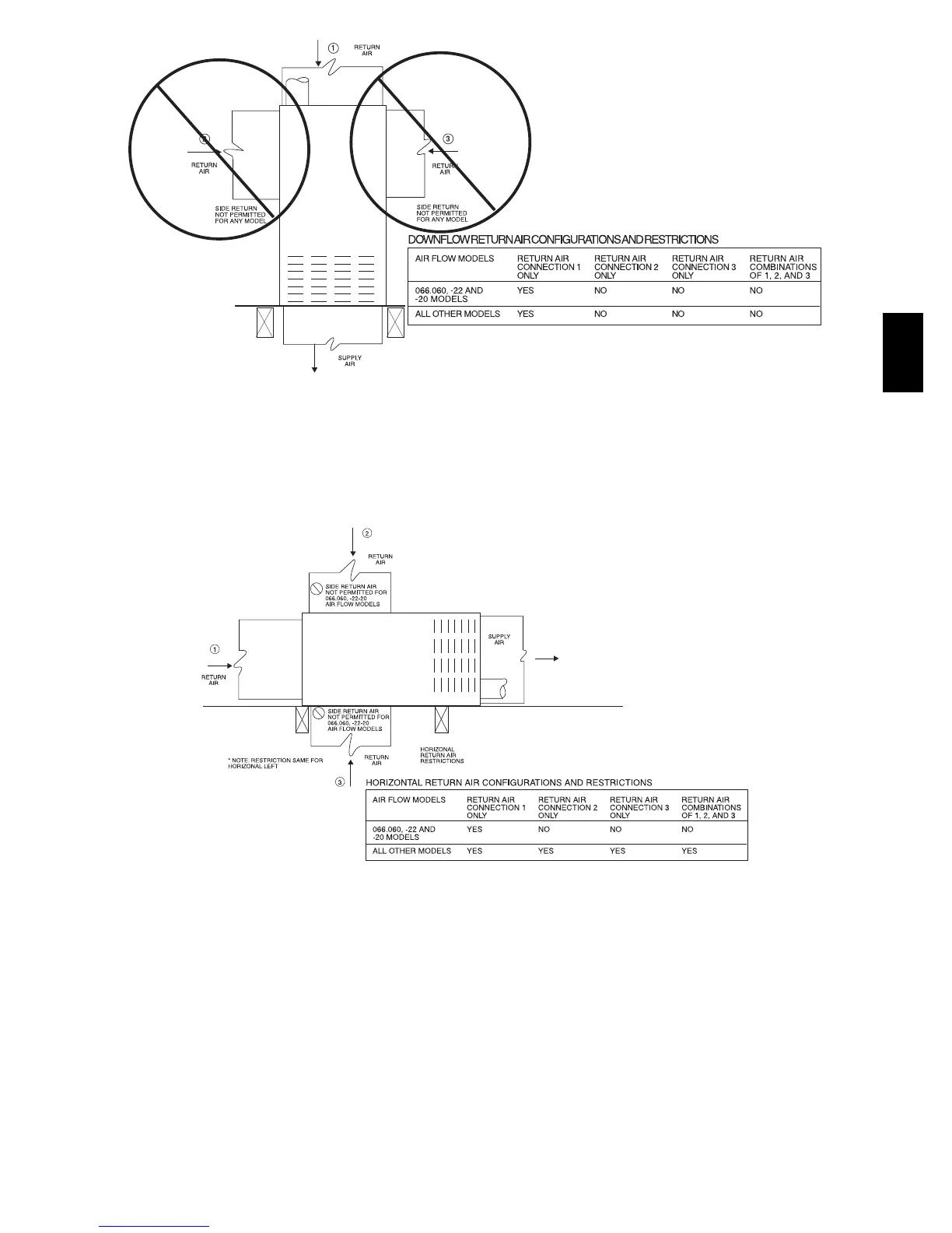 Fig. 19 -- Downflow Return Air Configurations and Restrictions