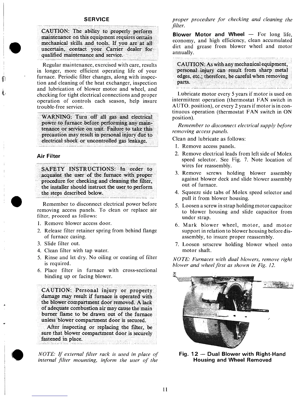 Carrier 58GS Series - Service; Air Filter; Blower Motor and Wheel; Dual Blower with Right-Hand Housing and Wheel Removed