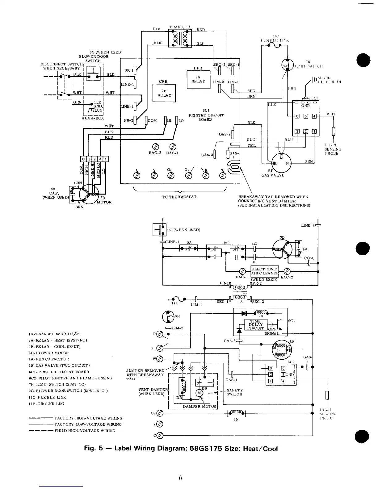 Carrier 58GS Series - Label Wiring Diagram (58 GS175 Heat;Cool); Specific Wiring for 58 GS175