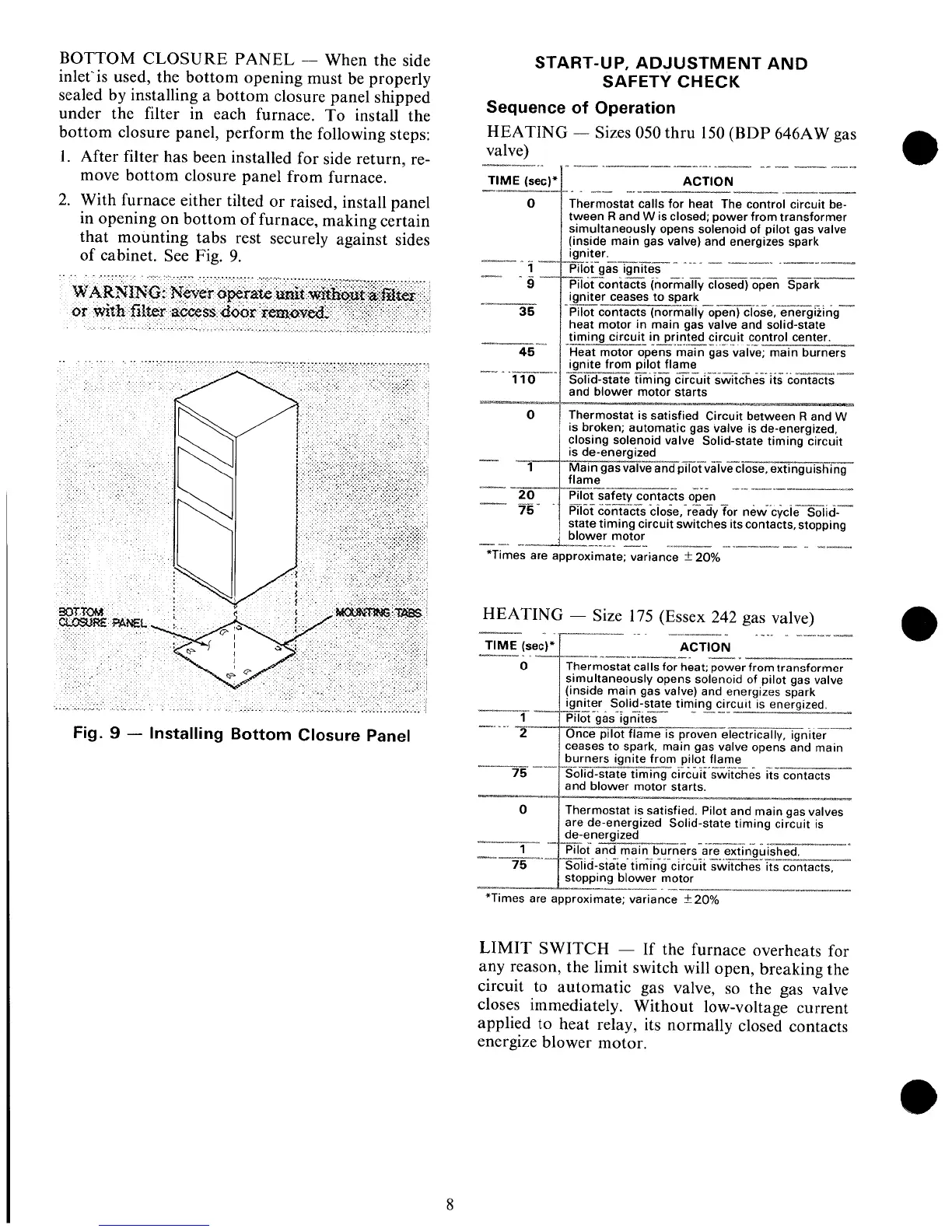 Carrier 58GS Series - Start-Up, Adjustment, and Safety Check; Heating Sequence of Operation; Limit Switch Function