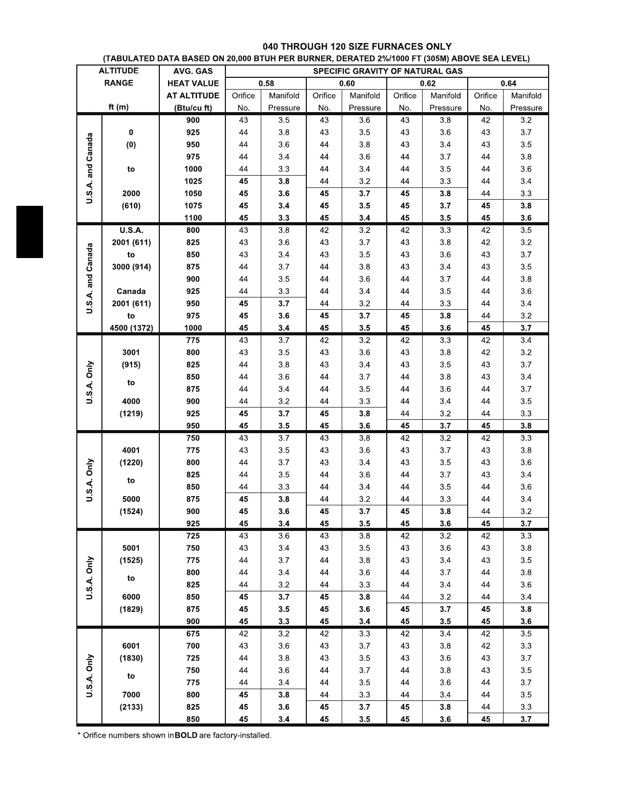 Table 14 Model 58MCB Orifice Size and Manifold Pressure for Correct Input