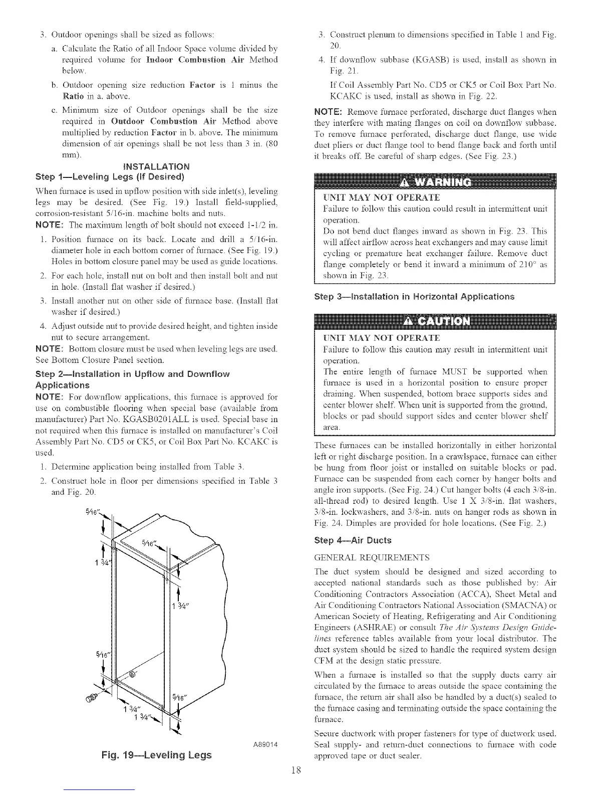 legs may be desired. (See Fig. 19.) Install field-supplied,