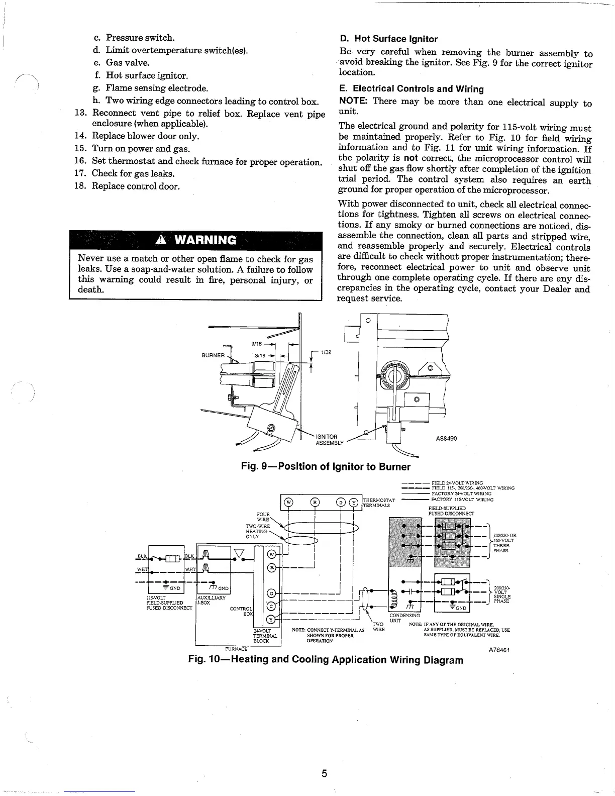 Carrier 58RAV Series - Hot Surface Ignitor Handling; Electrical Controls and Wiring