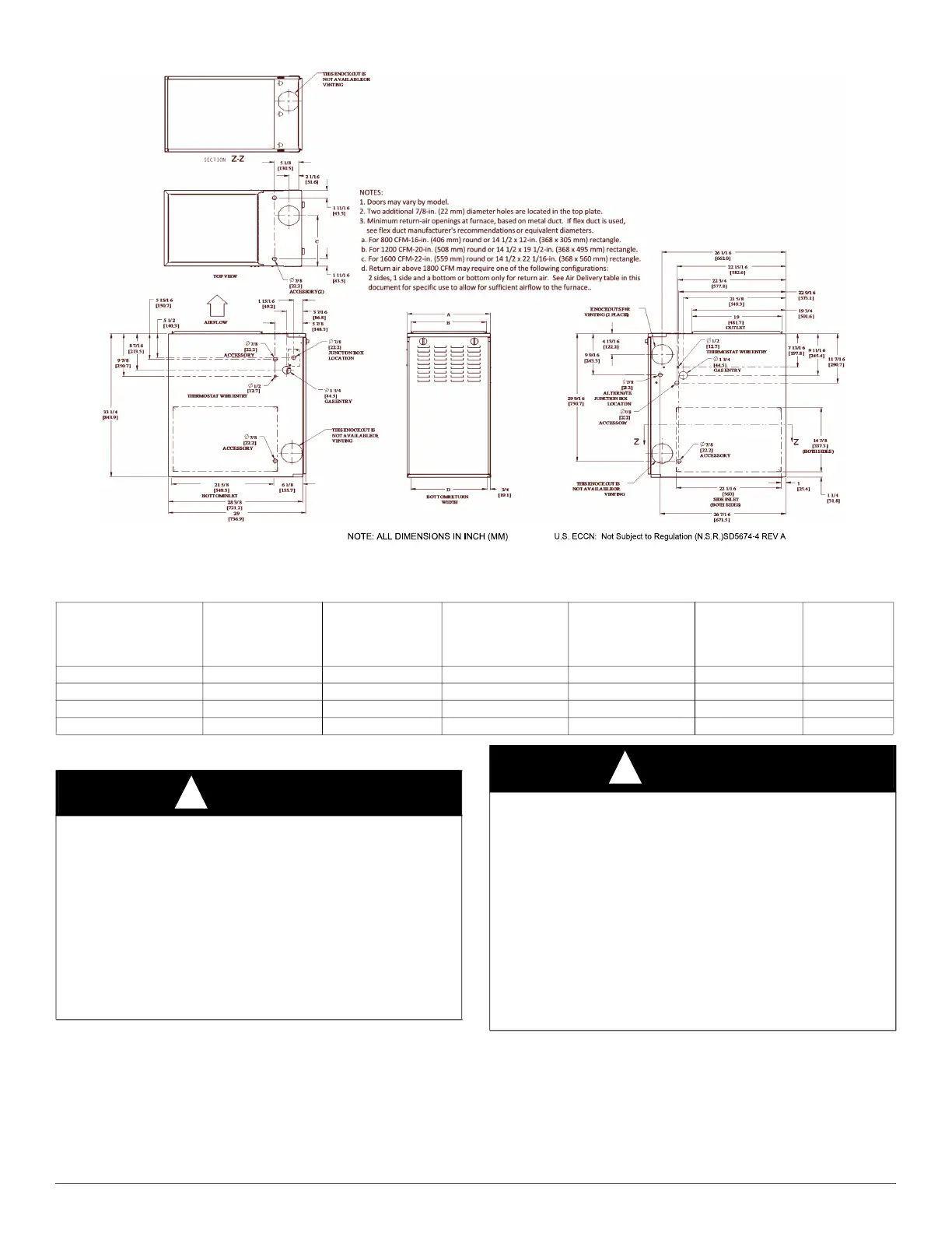approved in factory technical specifications literature for the furnace. A