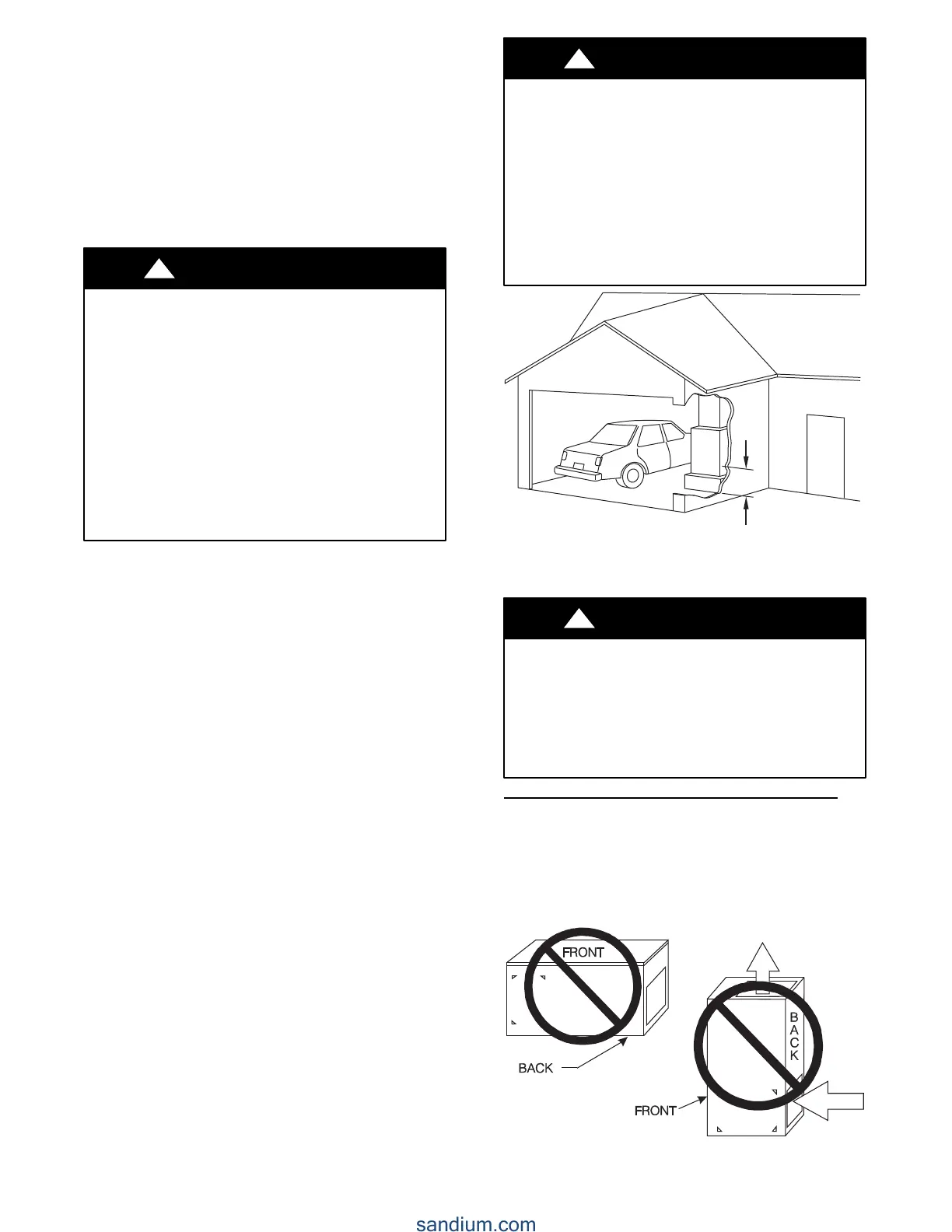 Do not install the furnace on its back or hang furnace with