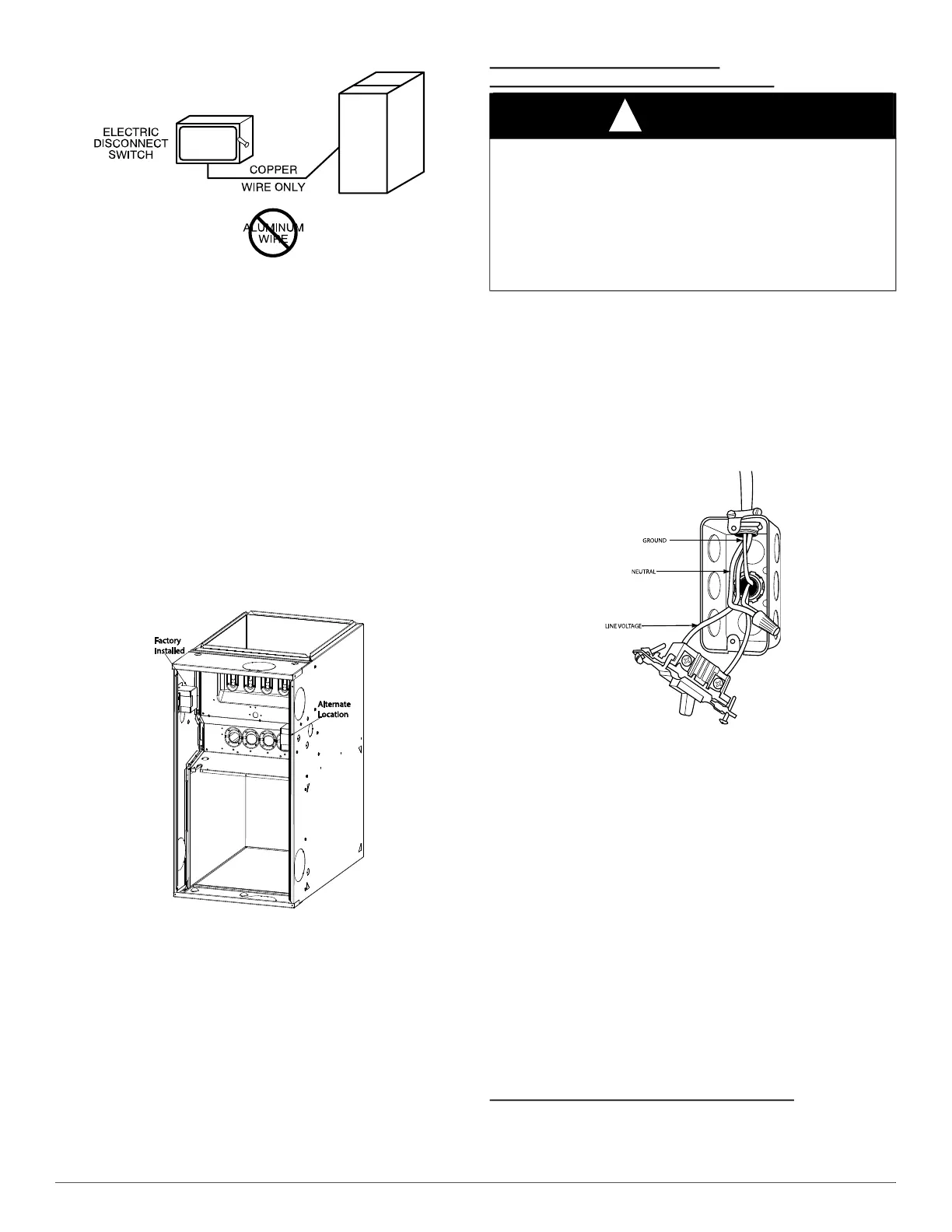 High voltage field connections must be located in J-Box with furnace or