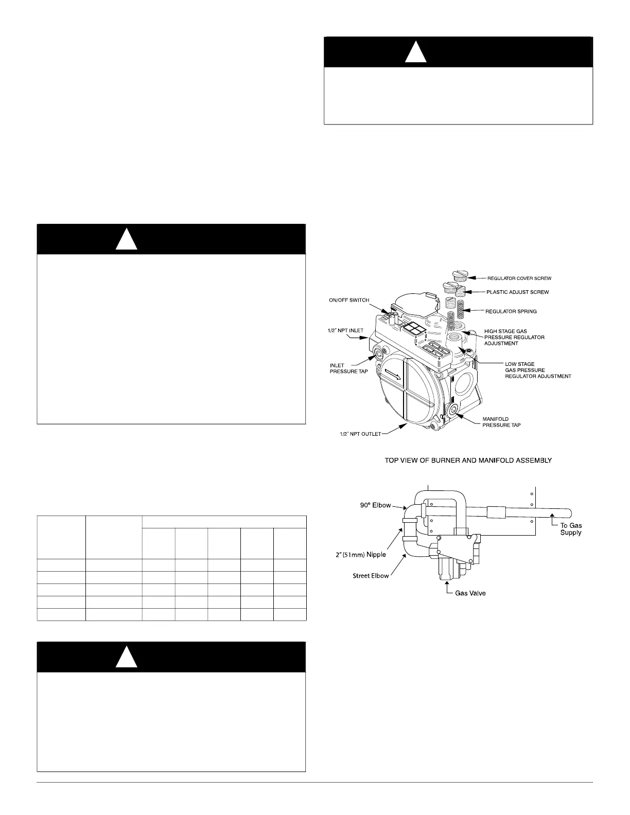 Refer to Table 4 for recommended gas pipe sizing. Risers must be used