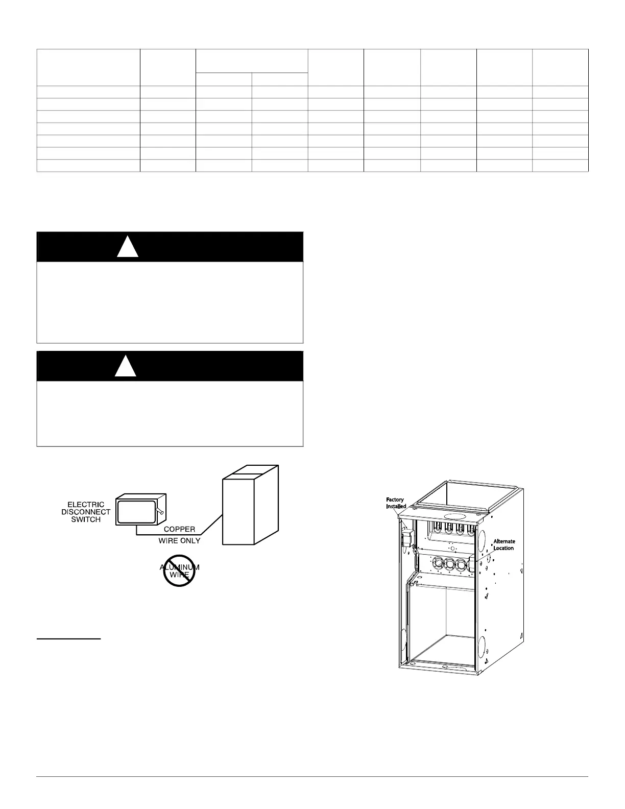 or circuit breaker for this furnace. See Table 5 for wire size and fuse