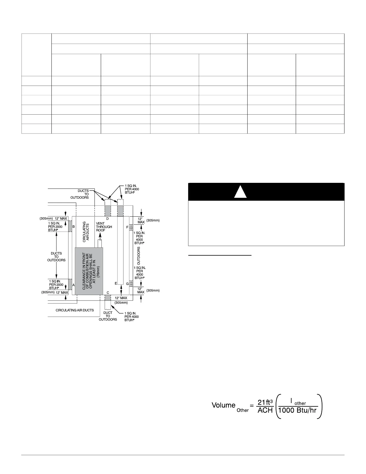 (1 SQ. IN./2,000 BTUH) (1,100 SQ. MM/KW) (1 SQ. IN./3,000 BTUH) (734 SQ. MM/KW) (1 SQ. IN./4,000 BTUH) (550 SQ. MM/KW)