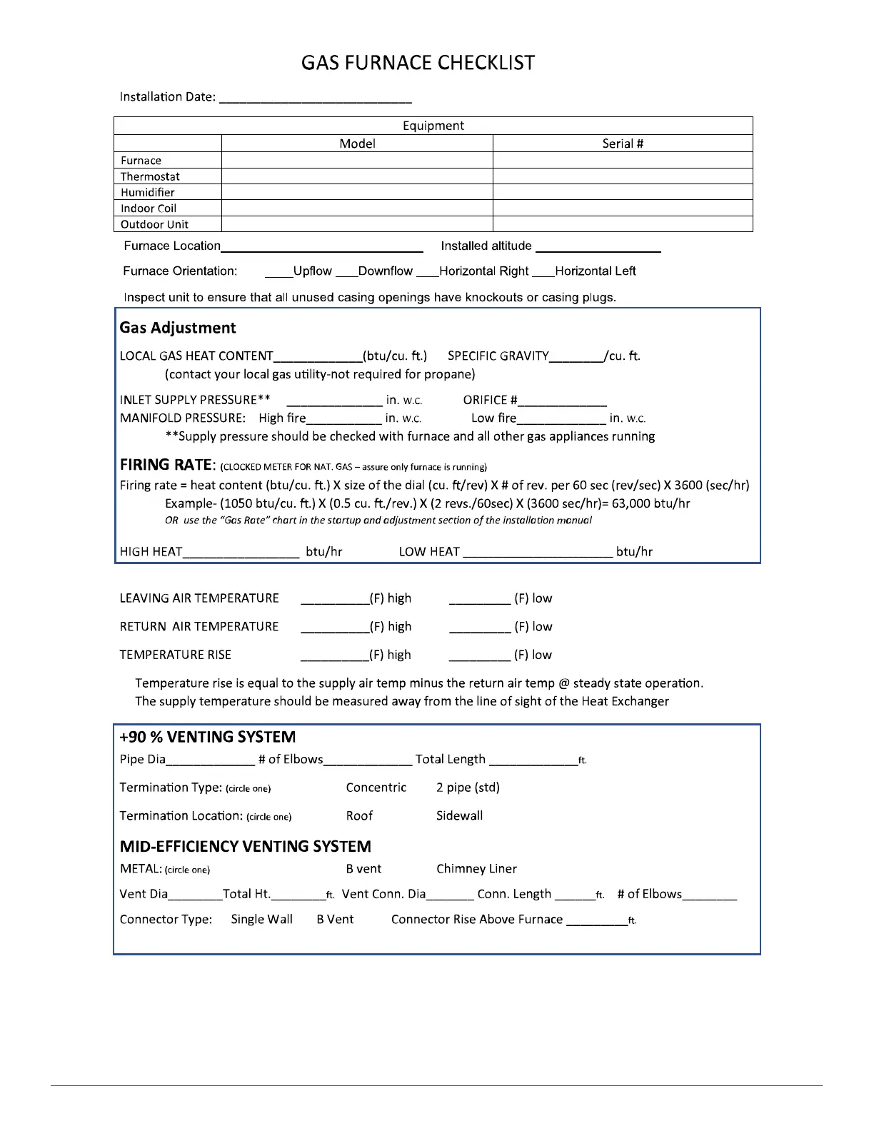 Fig. 72 – Gas Furnace Checklist