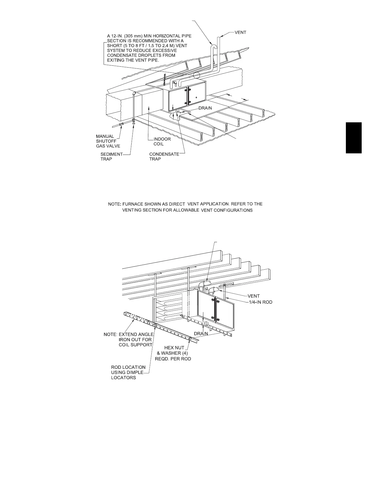 NOTE: Local codes may require a drain pan and condensate trap when a condensing furnace is installed over a finished ceiling.