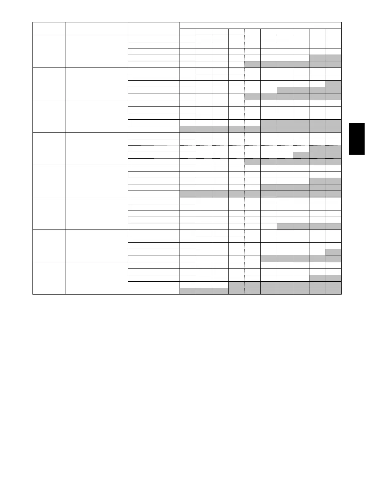 3. Shaded areas indicate that this airflow range is BELOW THE RANGE ALLOWED FOR HEATING OPERATION. THESE AIRFLOW RANGES MAY ONLY BE