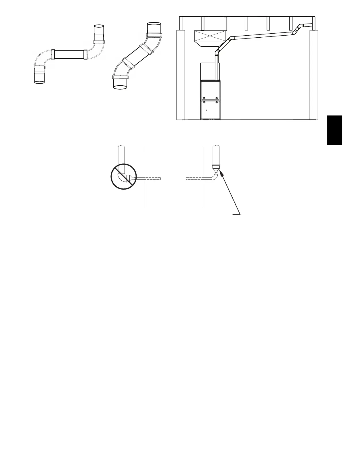 Fig. 43 -- Combustion Air and Vent Pipe Diameter Transition Location and Elbow Configuration