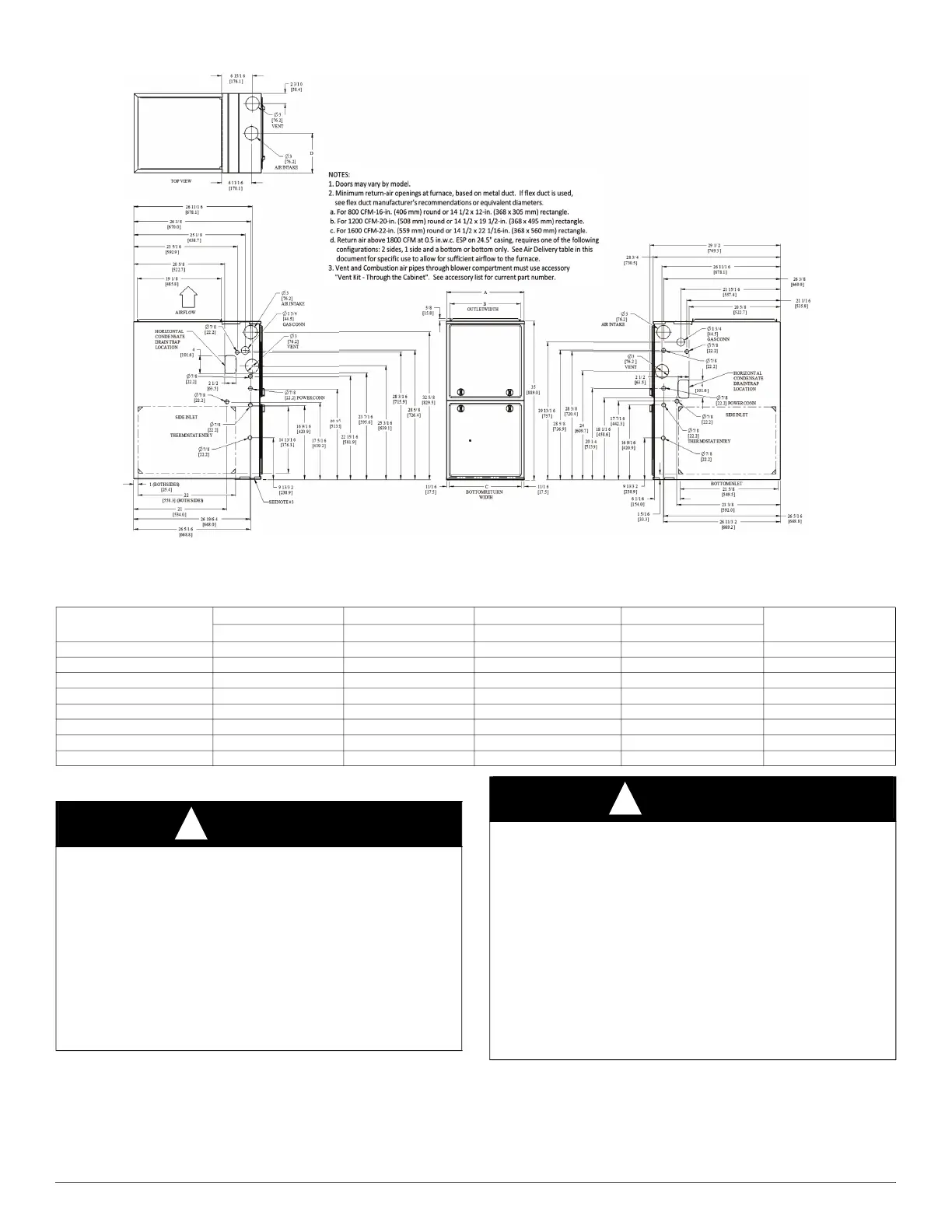 CABINET WIDTH OUTLET WIDTH BOTTOM INLET WIDTH AIR INTAKE