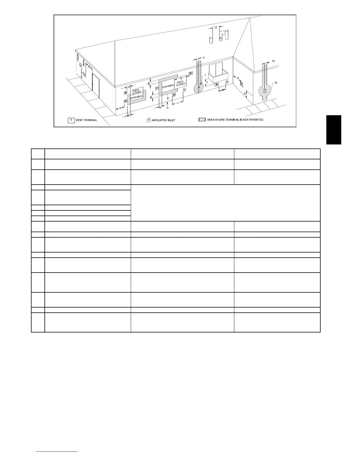 K Clearance to a mechanical air supply inlet 6 ft. (1.8 M) 3ft. (.9 M)