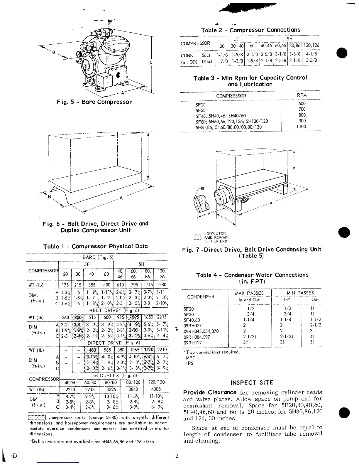 Carrier 5H - Compressor and Condensing Unit Specifications; Physical Data and Connection Tables; Site Inspection Requirements