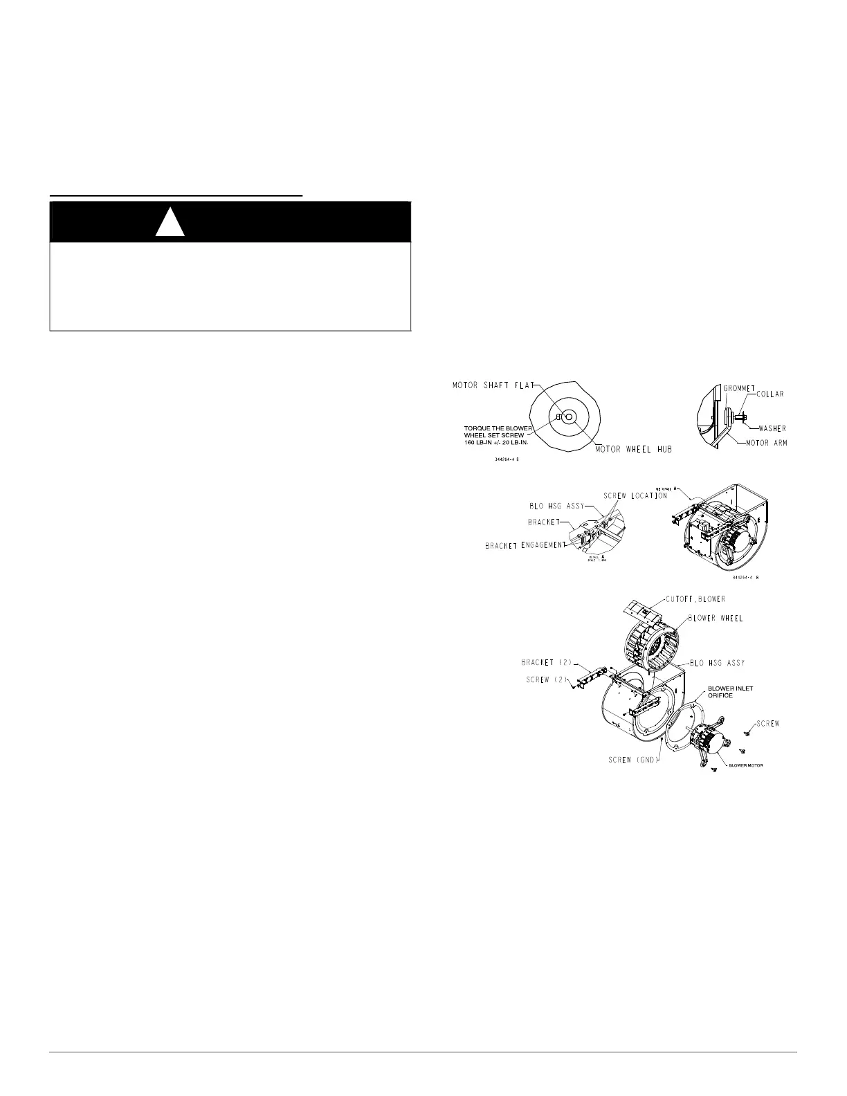 10. Torque blower wheel set screw to 160 +/- 20 lb-in. when