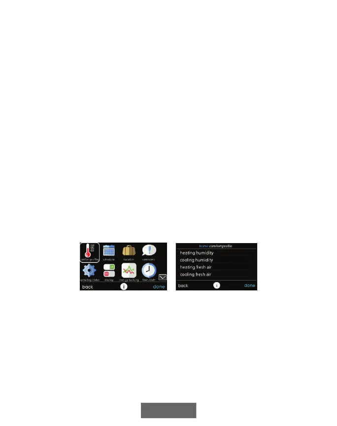 • For zoned systems, the selected fan speed and Comfort Profile changes will apply to the zone