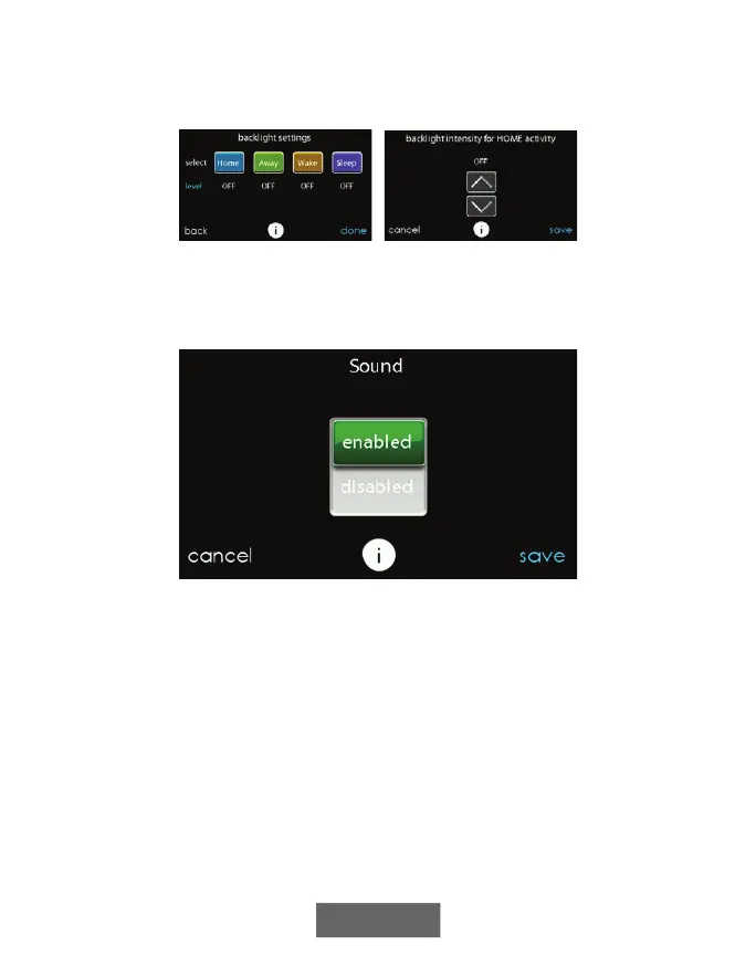 NOTE: After 30 seconds of inactivity on the touch screen, the backlight level will be set back