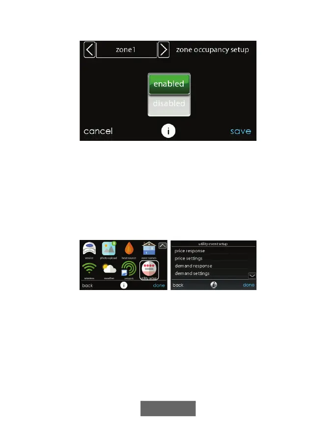 NOTE: Occupancy sensing indicator ONLY displays on the main and home screen when the