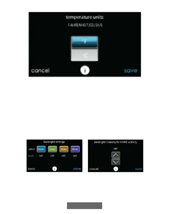 • Backlight levels are programmable for each Comfort Profile setting