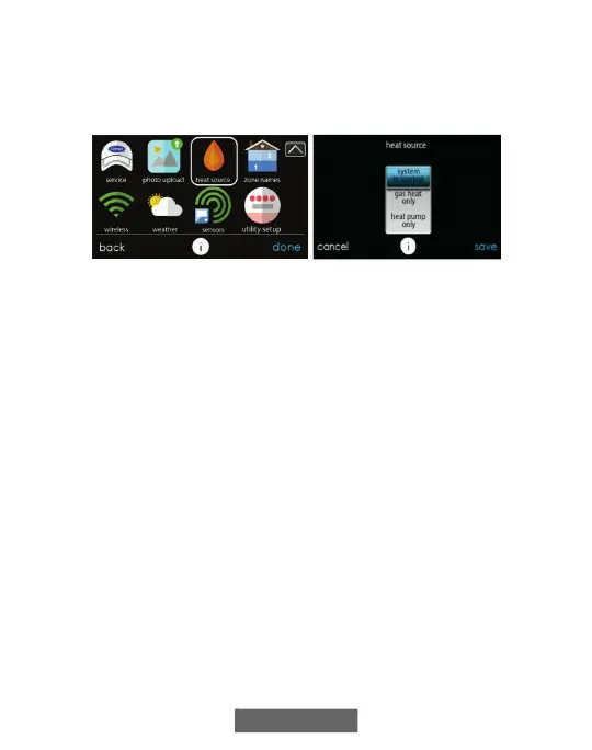 System. Select the HEAT SOURCE icon from the menu screen.