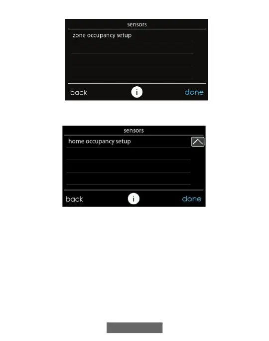 Home or zone (for zoning systems) occupancy setup is used to enable or