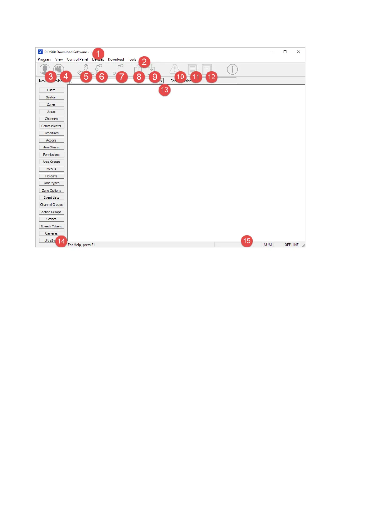 2. Menu Bar – Program contains settings for DLX900, View turns on/off Toolbar and