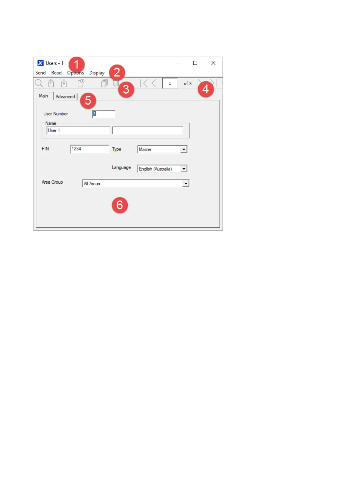 2. Menu Bar – commands to Send data to the panel, read data from the panel, and