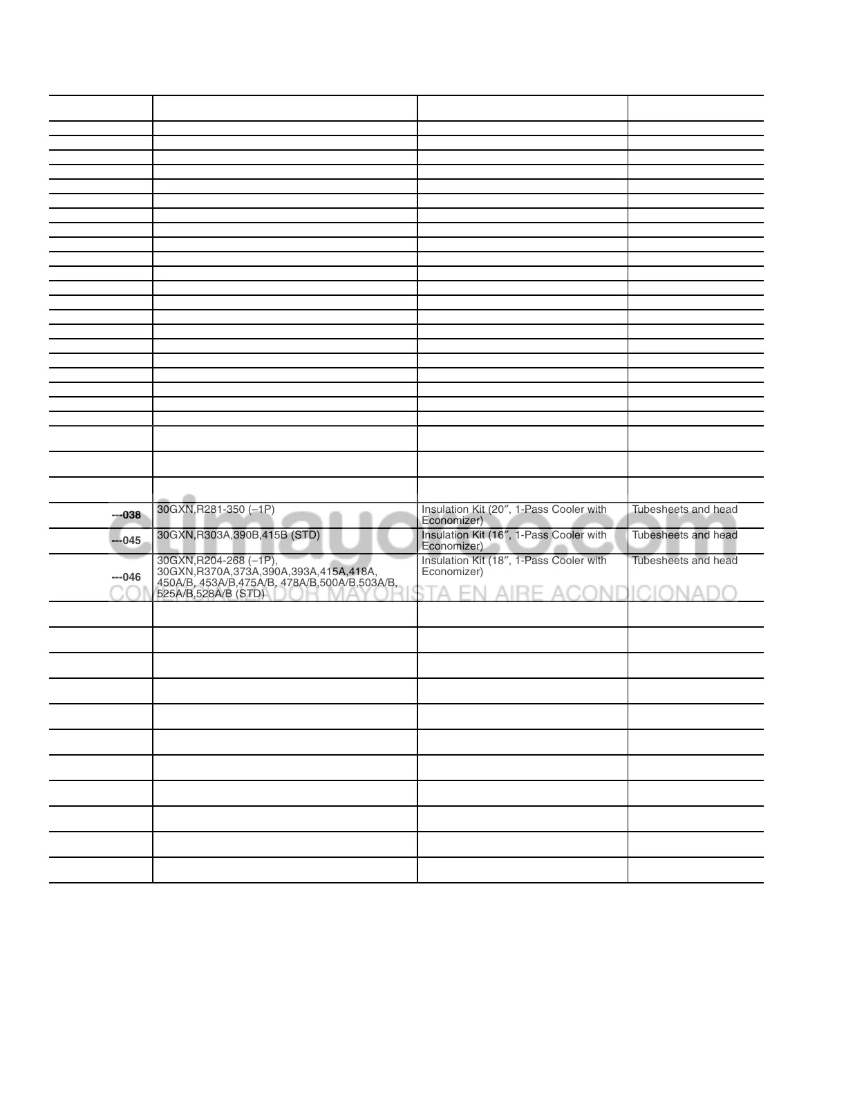 30GXN,R118,128,138,150,153 (–1P) Insulation Kit (14″, 1-Pass Cooler with