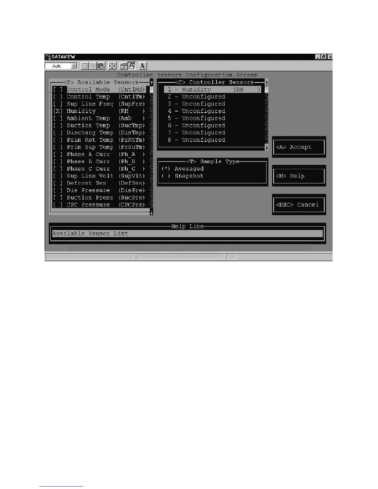 configuration for each sensor. The following screen is displayed when t his option is chosen.