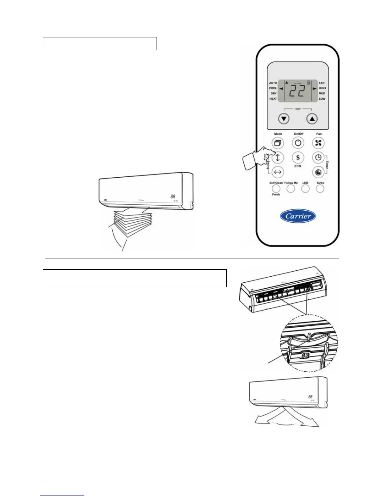Press ↕ Swing button on the remote control less than 2 seconds,