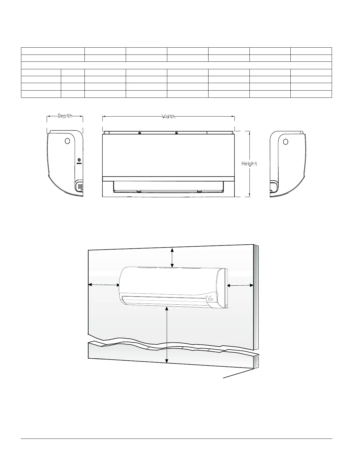 NOTE: The top clearance recommended for proper return airflow is 5.9in (15cm). Reduction of this clearance may decrease unit