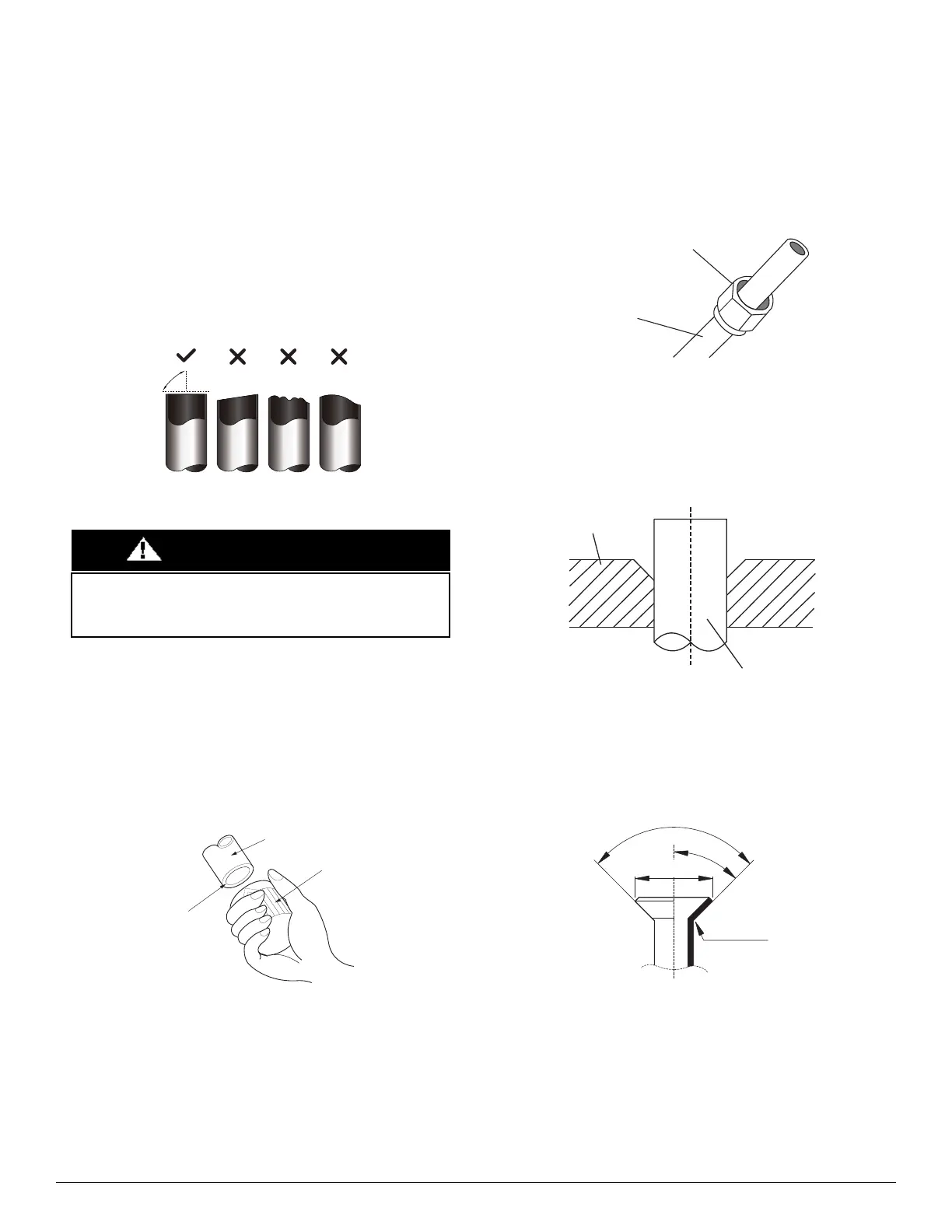 Burrs can affect the air-tight seal of the refrigerant piping connection.