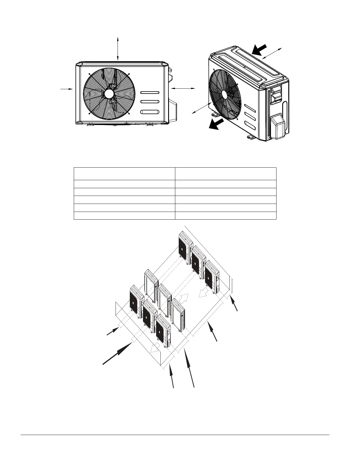 Table 4 — Dimensions – Dégagement de l’appareil extérieur