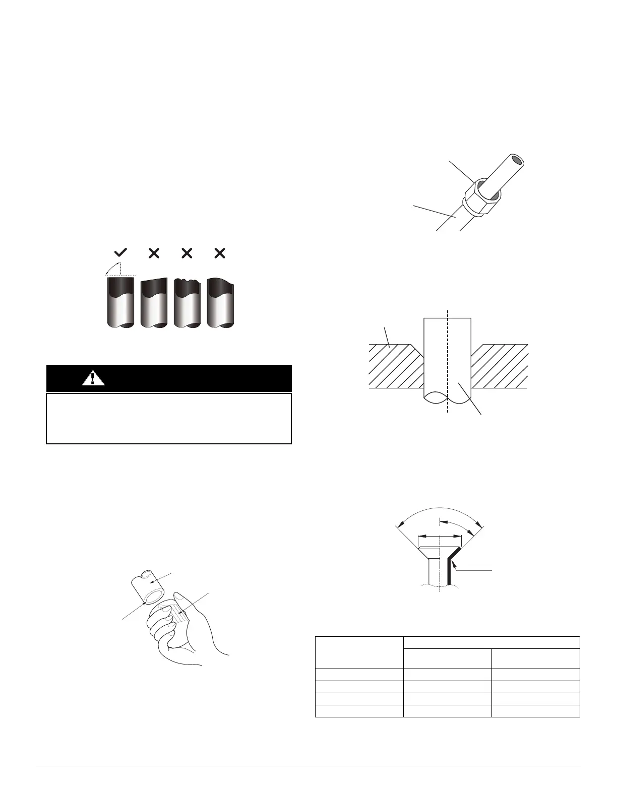 tuyauterie au niveau du raccord évasé, puis fixez la tuyauterie et le