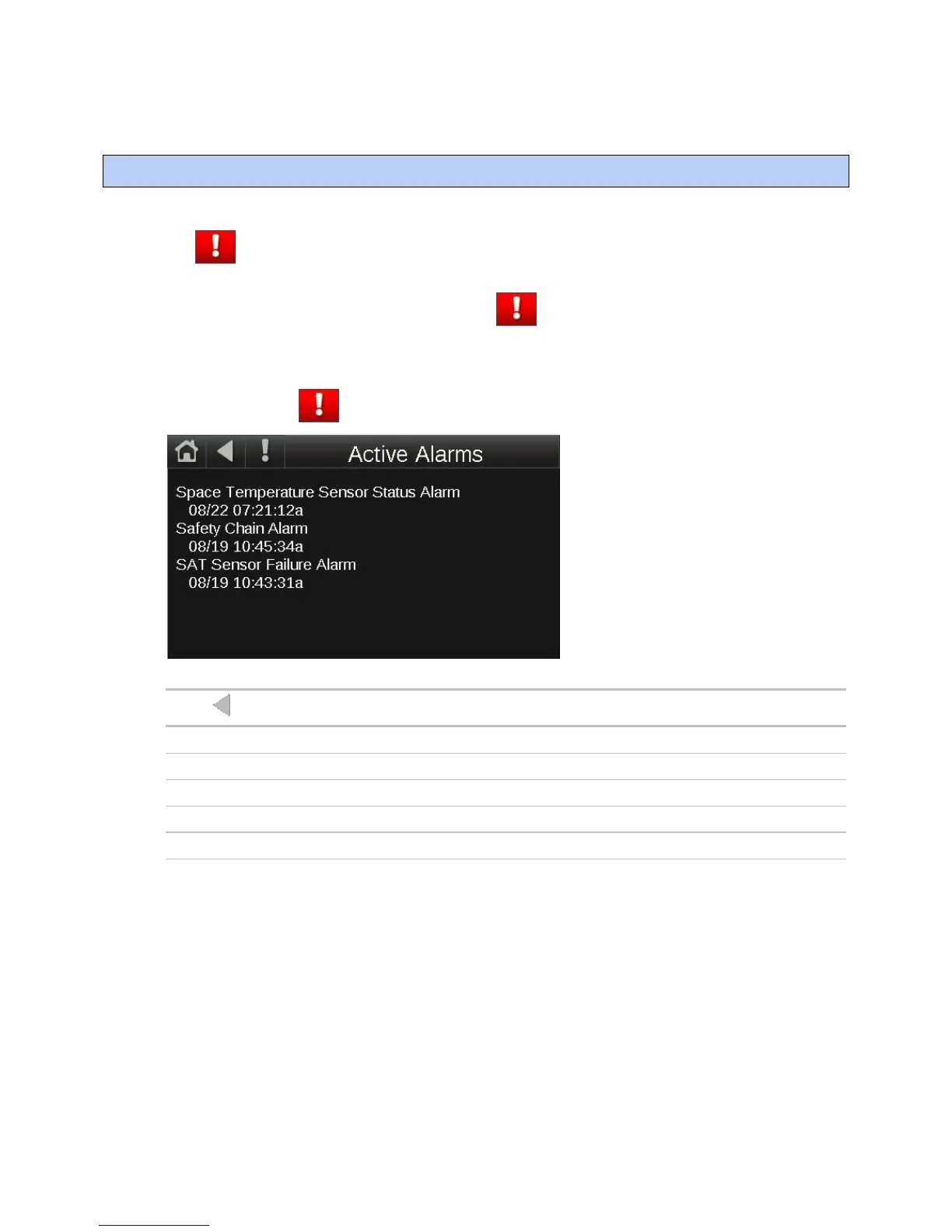 When the controller generates an alarm, the following actions occur in the Equipment Touch: