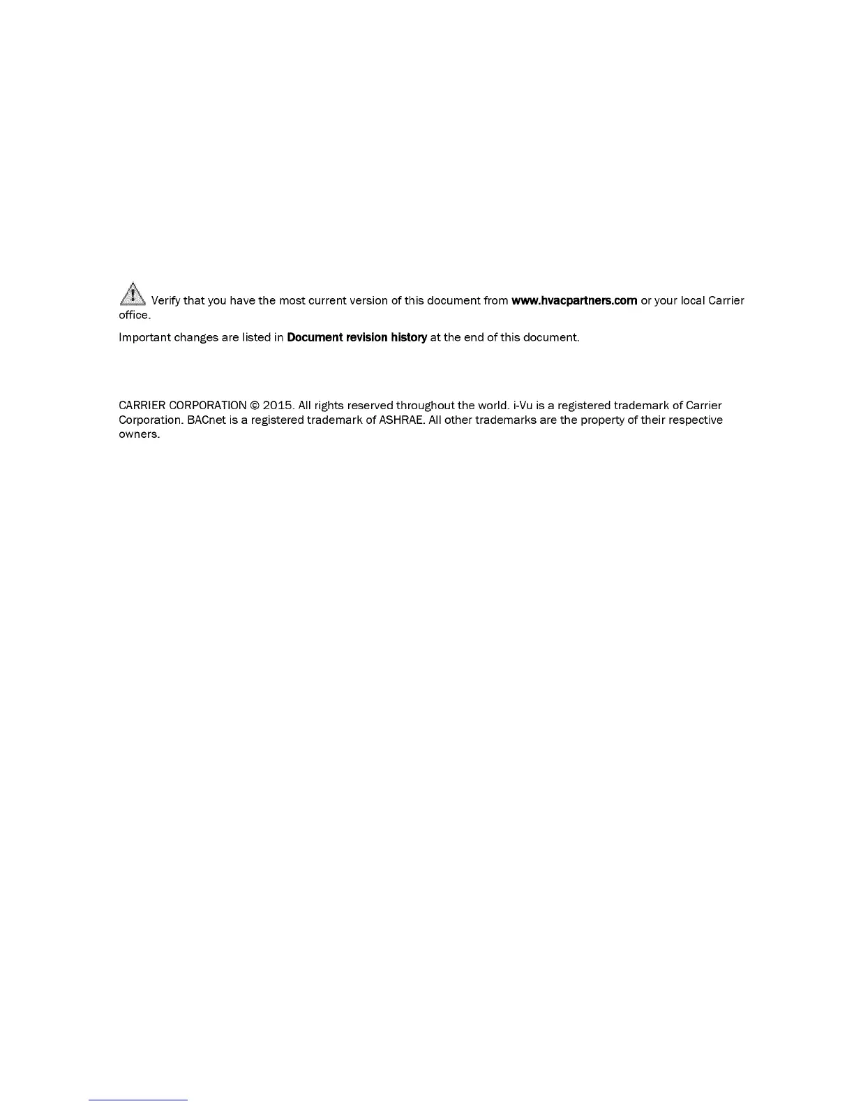 CARRIER CORPORATION © 2015. All rights reserved throughout the world, i-Vu is a registered trademark of Carrier