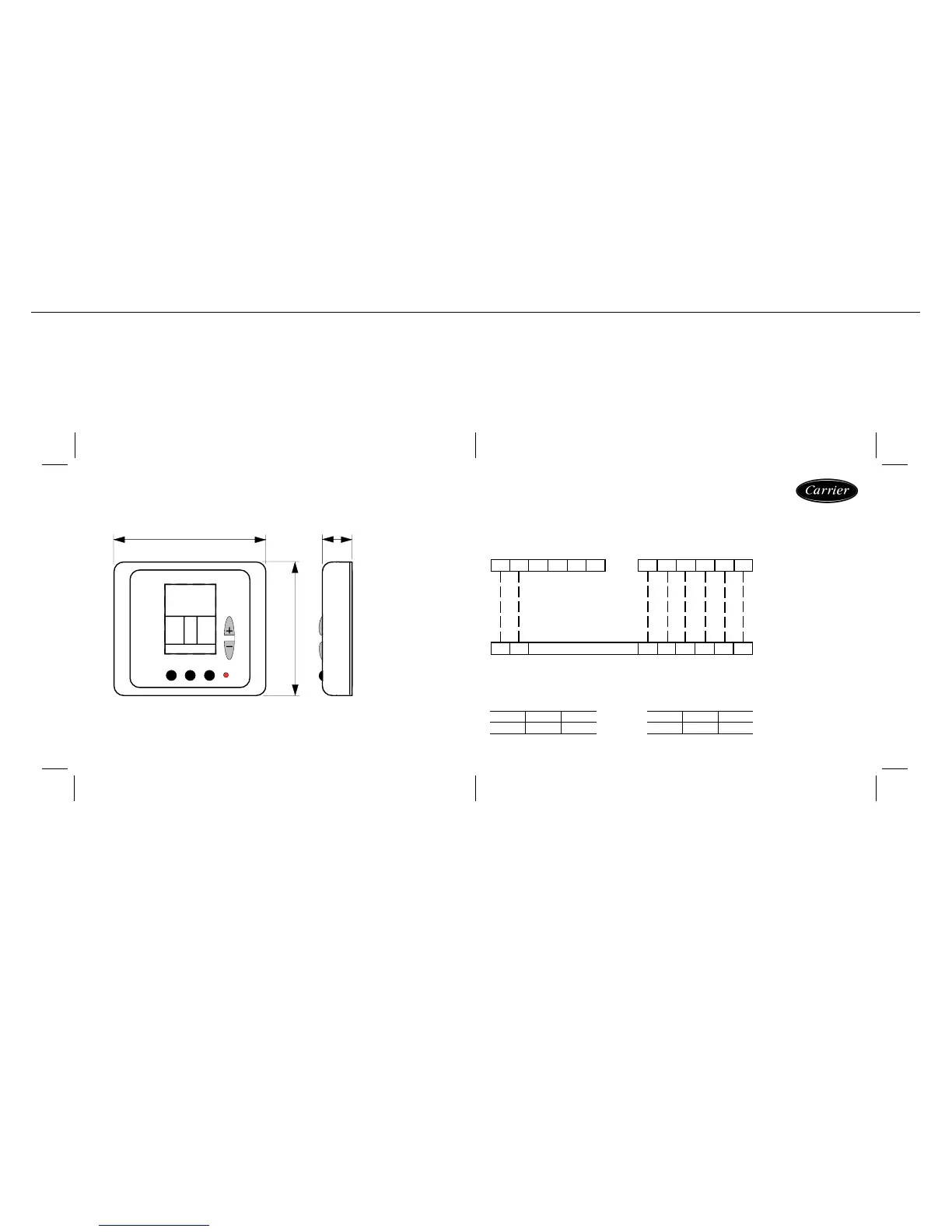 Carrier ETN - Front Panel Dimensions; Terminal Connections and Configuration; Thermostat Terminal Layout; Unit Electrical Box Terminals