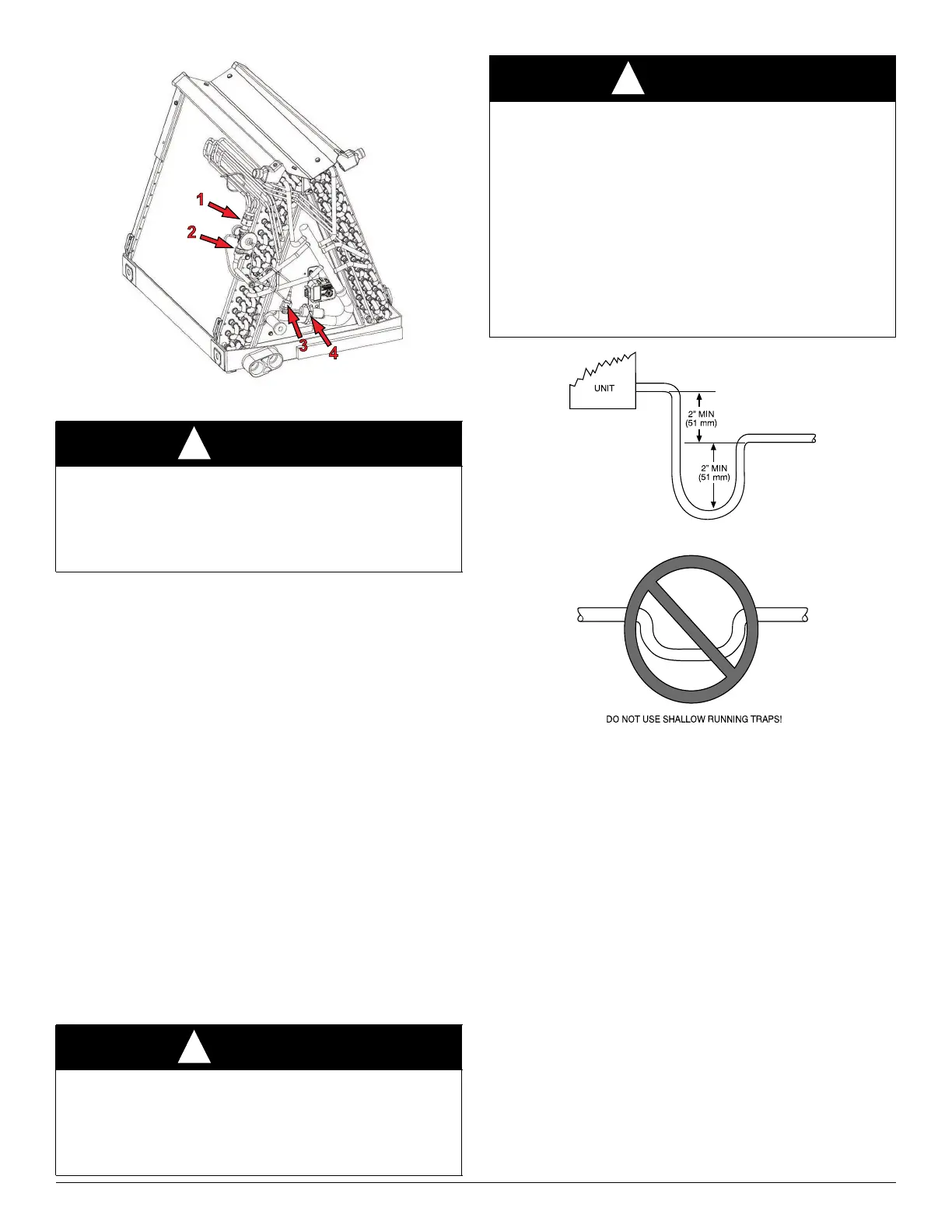 Use only full size P-traps in the condensate line (Fig. 16). Shallow