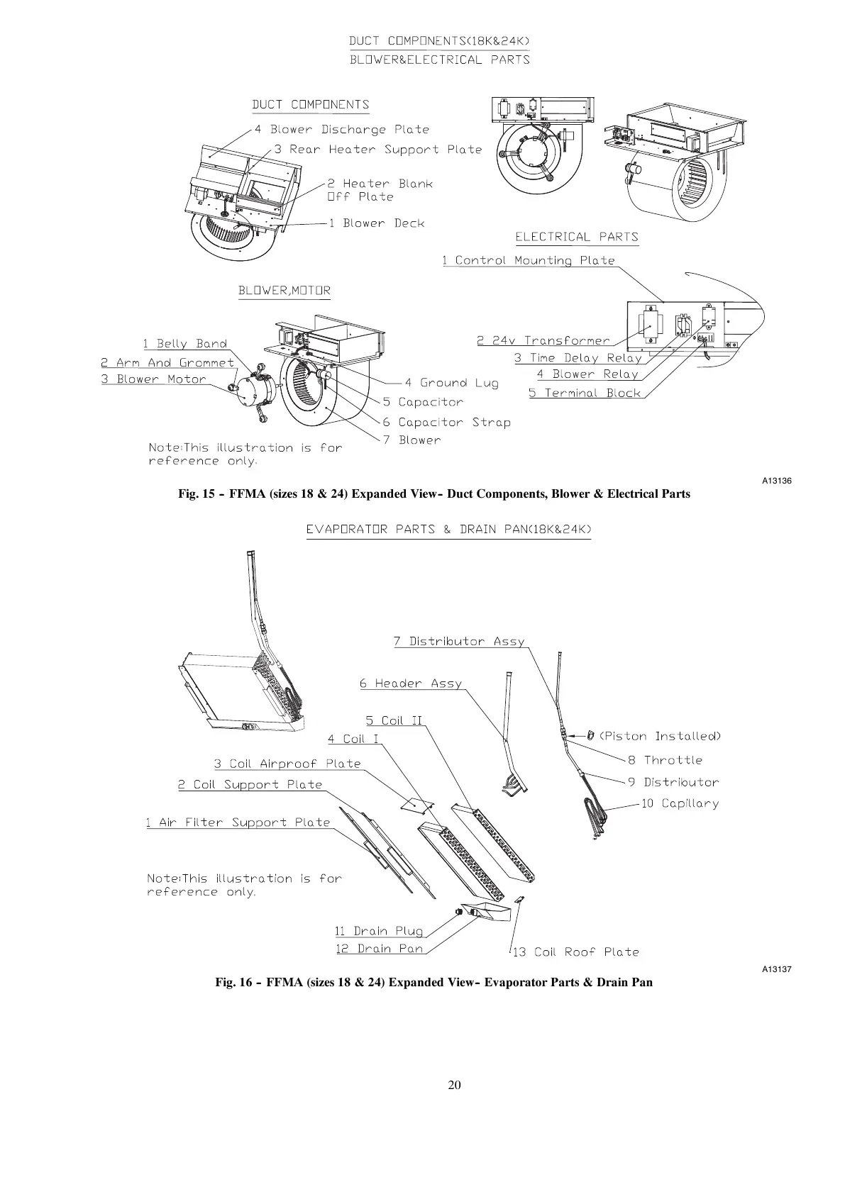 Fig. 15 -- FFMA (sizes 18 & 24) Expanded View-- Duct Components, Blower & Electrical Parts
