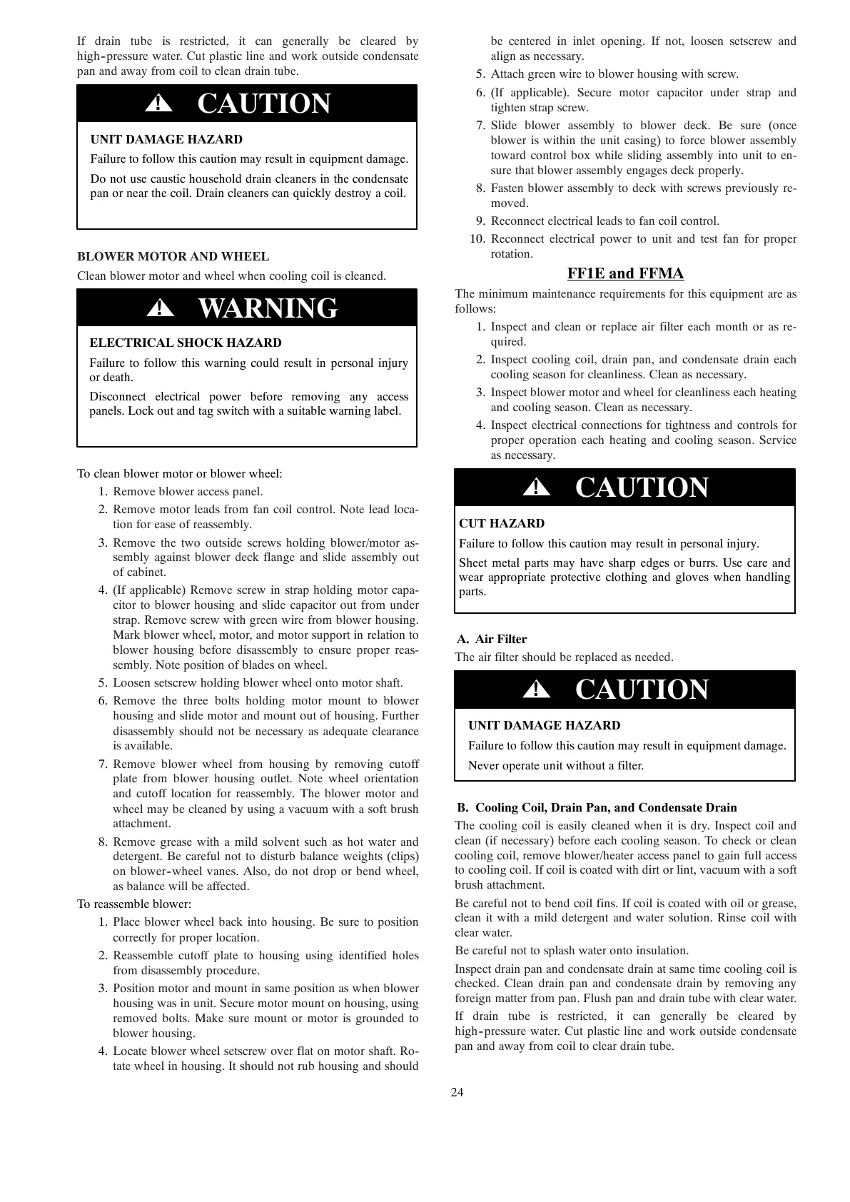 Clean blower motor and wheel when cooling coil is cleaned.