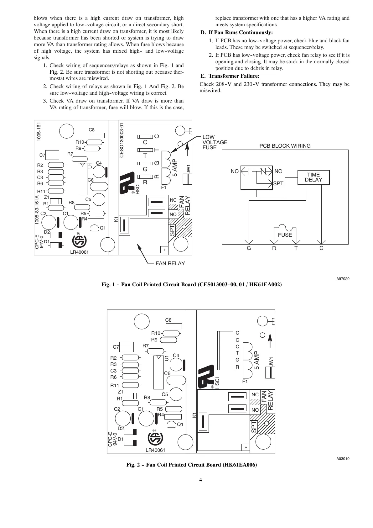 2. If PCB has low--voltage power, check fan relay to see if it is