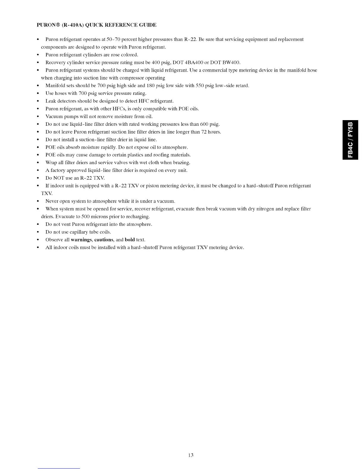 • Do not vent Puron refrigerant into the atmosphere.
