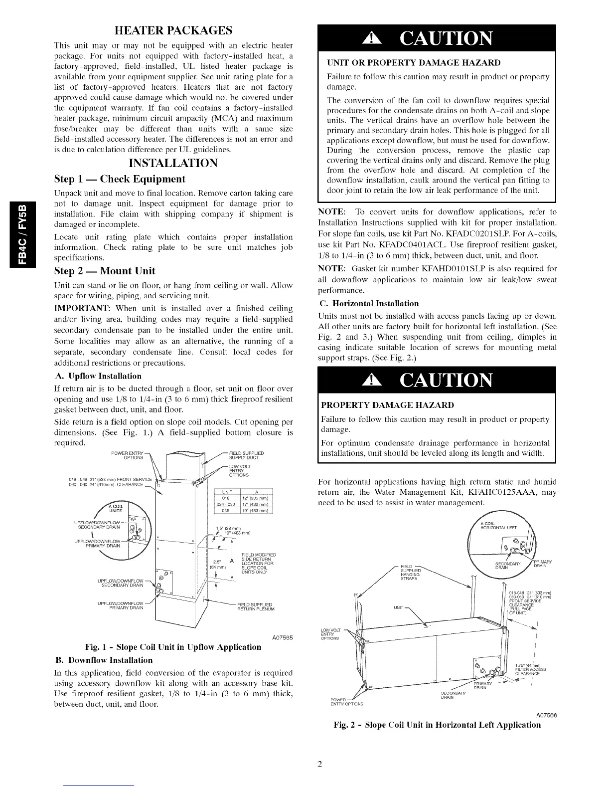 For slope fan coils, use kit Part No. KFADC0201SLP. For A-coils,