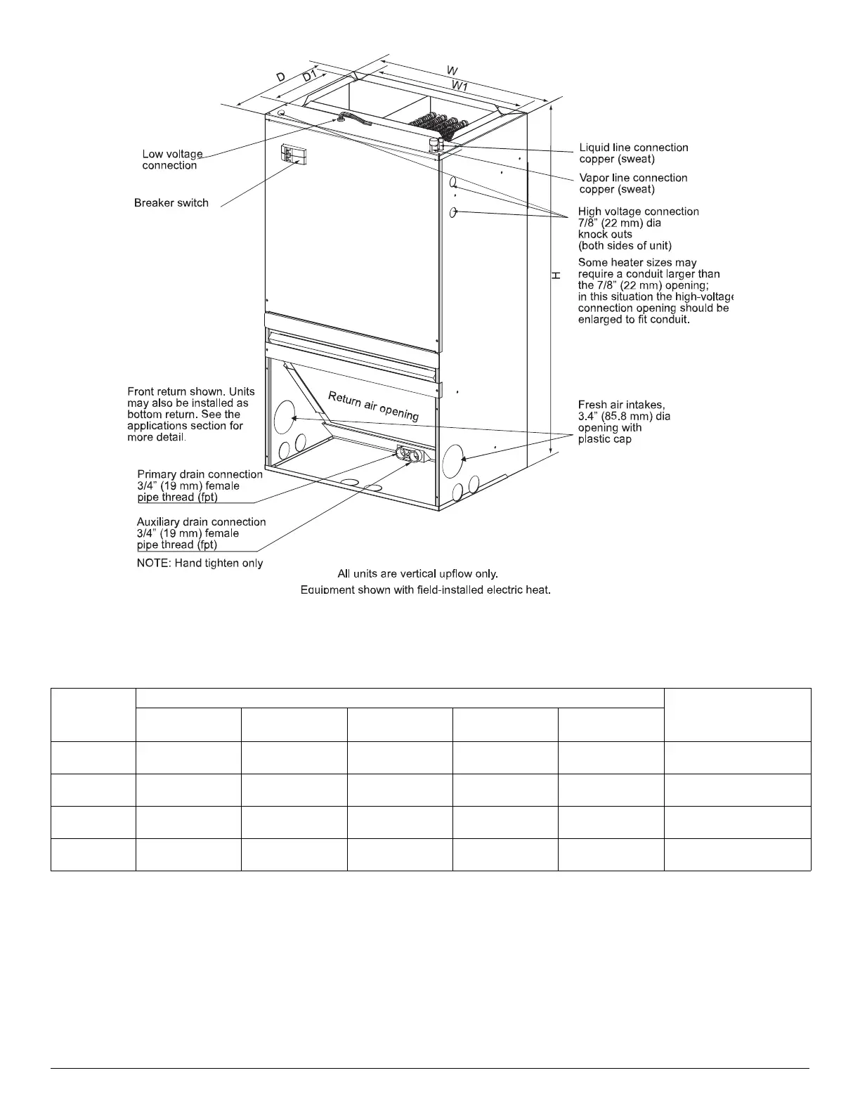 * For factory installed electric heater models, add 4lb (1.7kg) to the weight.